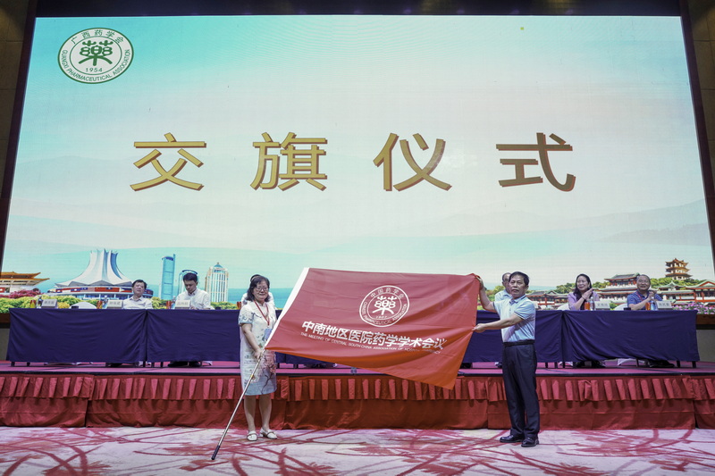 經(jīng)大會(huì)討論,《中南地區(qū)第十九屆醫(yī)院藥學(xué)學(xué)術(shù)會(huì)議》2024年在海南省舉行,開幕式上舉行了莊嚴(yán)的交旗儀式,由廣西藥學(xué)會(huì)秘書長黃瑞松將中南地區(qū)醫(yī)院藥學(xué)學(xué)術(shù)會(huì)議會(huì)旗交給海南省藥學(xué)會(huì)副秘書長韓方璇。